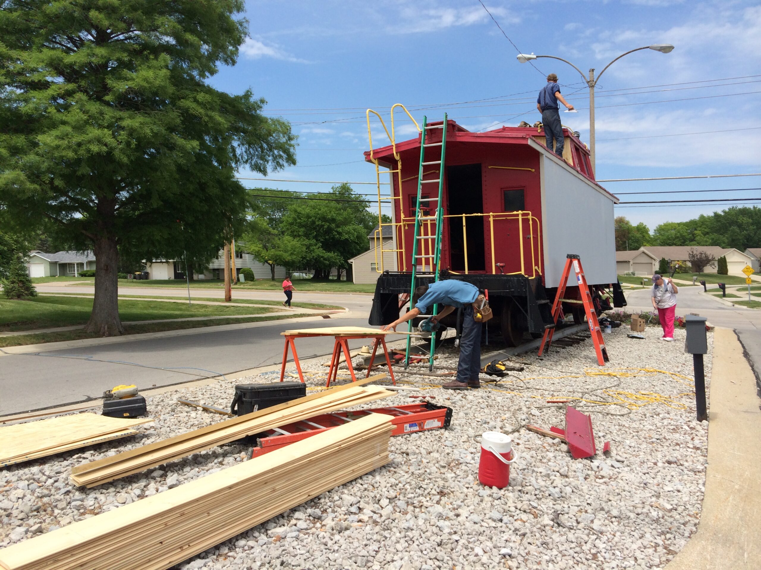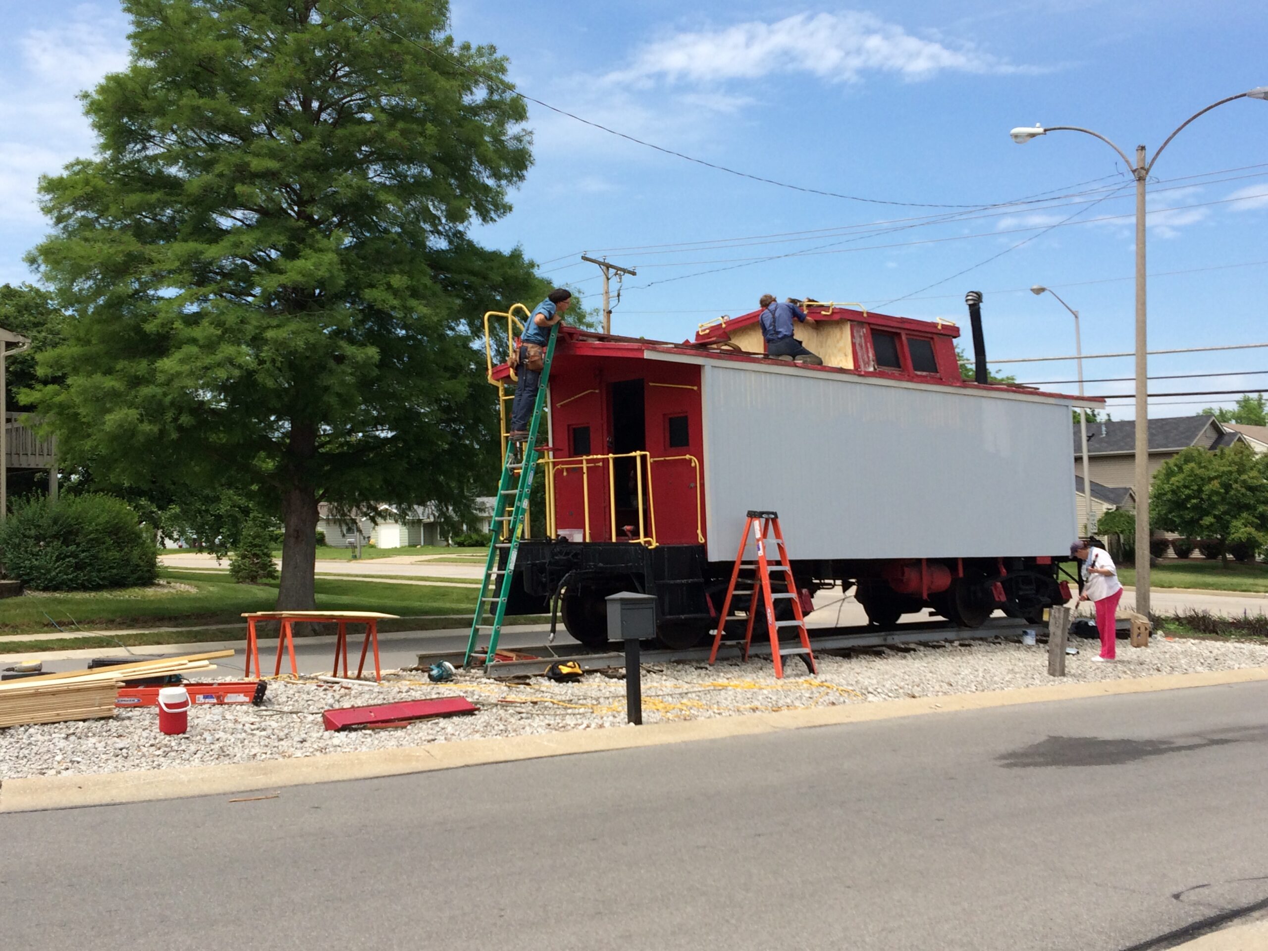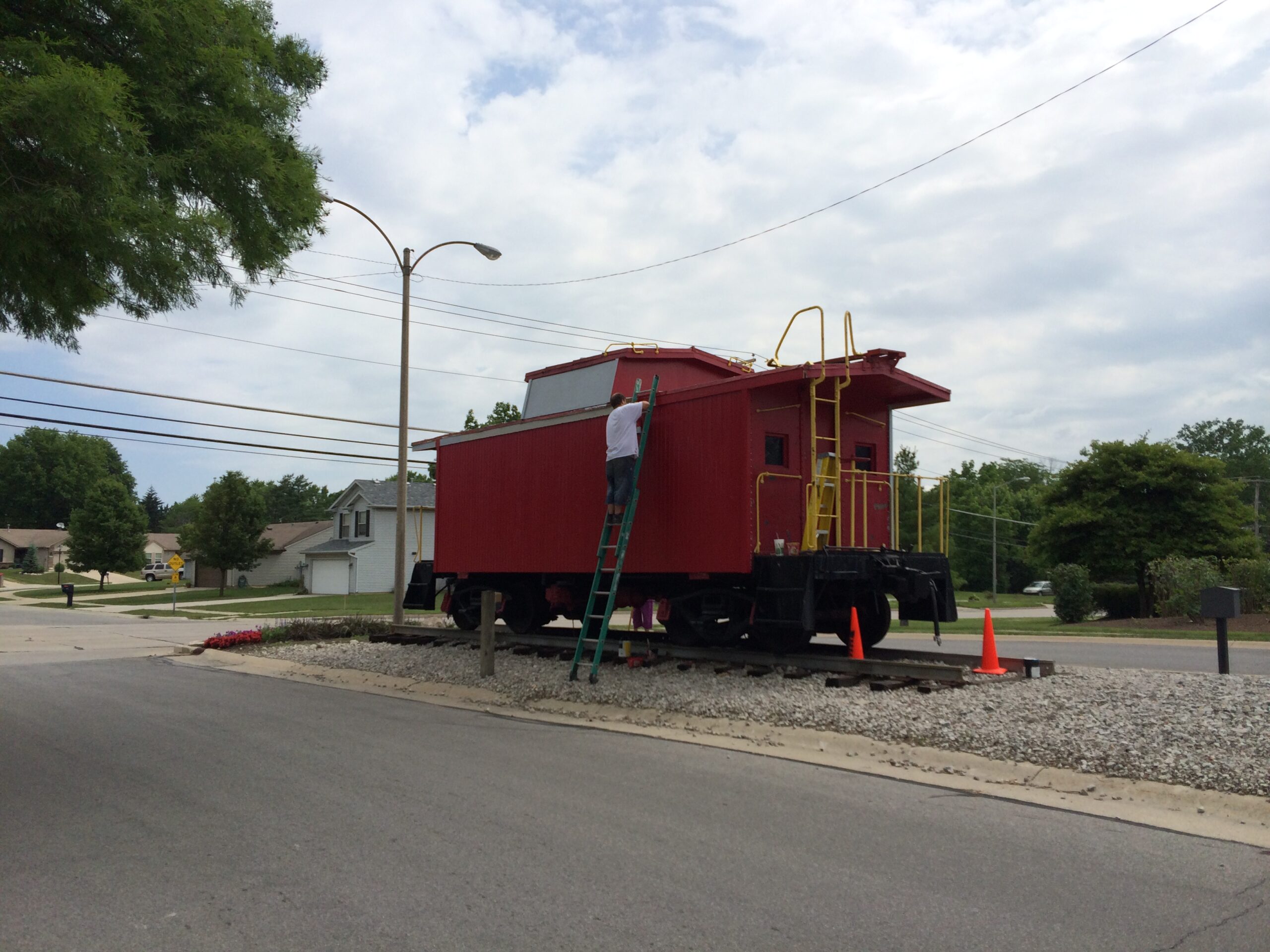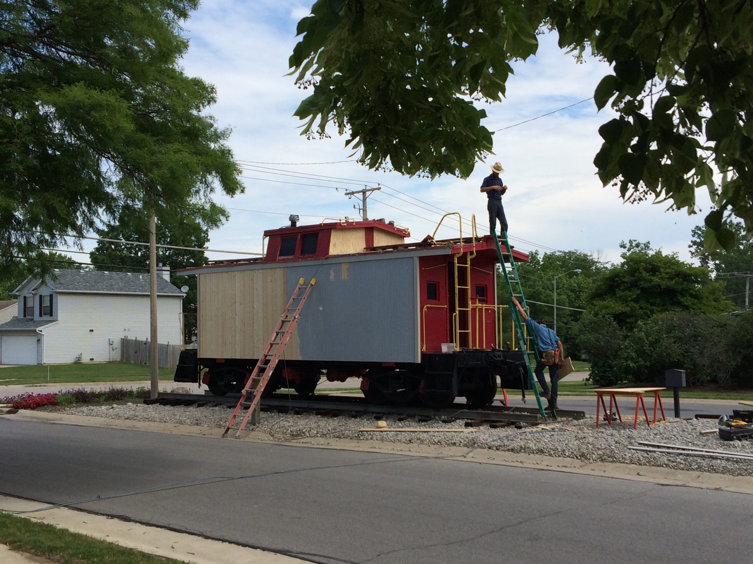 As you may have noticed over the past weeks, we’ve had crews working hard residing and painting our beloved caboose. We’re excited to see the finished product!